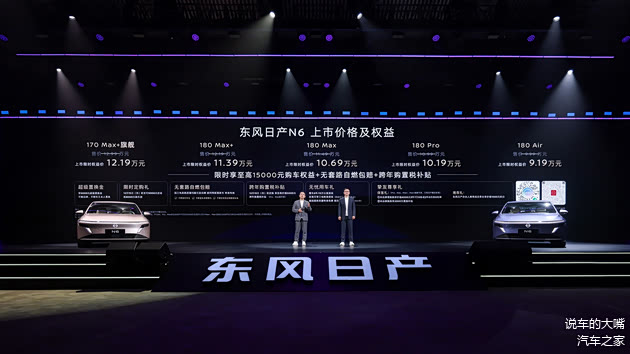 这次推出的N6是东风日产天演架构下的首款插混车,定位是“大电池超舒适中高级插混轿车”。简单说就是又智能又舒服,还特别有品质!一共出了5个版本,价格从9.99万到12.99万,非常亲民。