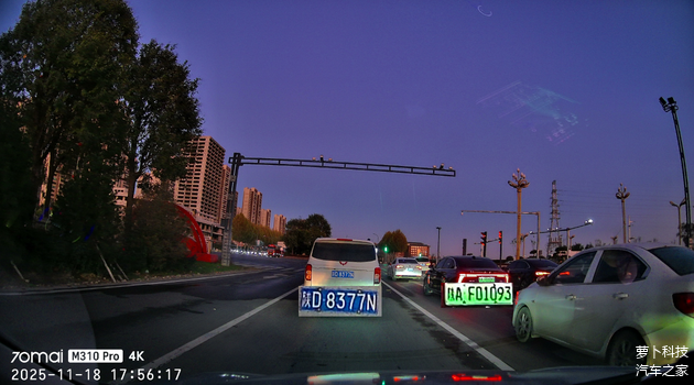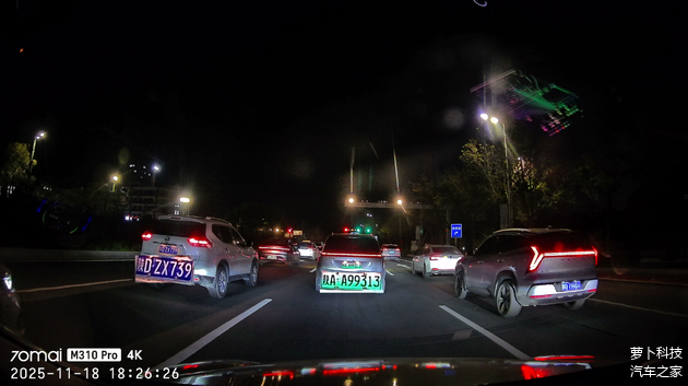 这是它最让我惊艳的地方!3840×2160的4K分辨率,比之前用的2K旧机清晰太多--白天正常光线下,前方三车道的车牌能看得清清楚楚。