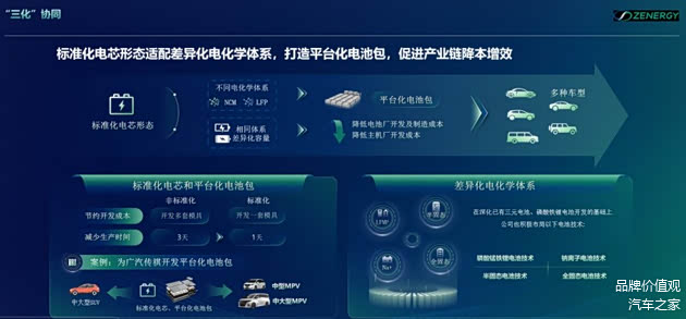 “三化协同”对应的是:电芯形态标准化、电池包系统平台化和电化学体系差异化。