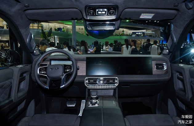 走进车内,内饰的设计上,它和当下的新能源车型很接近,因为它选用的是贯穿式的双联屏处理,而它的这个贯穿式是属于中控屏和副驾屏的贯穿,并不是说中控屏和液晶仪表的贯穿。其次这款车型还有1.92英寸的启动按键屏,9英寸的流媒体后视镜,以及HUD抬头显示等等。作为一款硬派SUV车型,这款车呈现出的是一种很精致的科技感,并没有那种很粗犷的感觉,而且整个内饰当中采用多处皮革的包裹,也显得特别的豪华。但是这款车型作为非承载式的硬派SUV,它在车内保留了大量物理按键,我认为很契合它的定位,而且它的物理按键的设计是与整个中控台融合在一起,这样的布局方式也很不错。