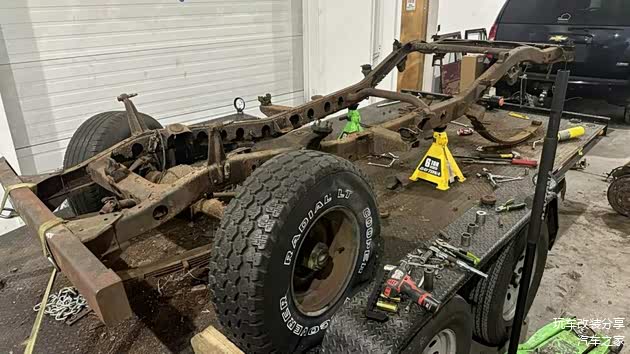 Legacy Overland接手时,这辆FJ40的状态极为糟糕:车身锈蚀严重,底盘部件大面积锈毁,内饰缺失,引擎完全报废,近乎一堆废铁。技师们从零开始,拆除了所有原厂车身面板,焊接了新的底盘导轨,并清除了所有锈迹,为重生打下坚实基础。