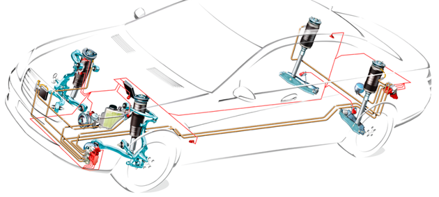 ▲奔驰ABC液压悬架实现了电子控制