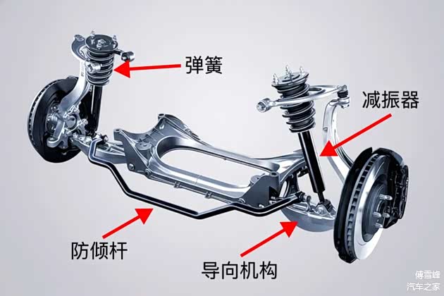 悬架不外乎那几个部件:弹簧、减振器、导向机构(连杆摆臂)、防倾杆。