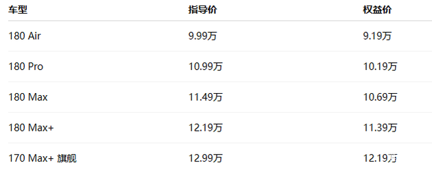 此次上市的五款车型覆盖 Air、Pro 到 Max+、旗舰等配置版本,价格策略清晰有效: