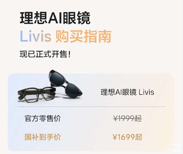 直到2024到2025年,多模态大模型的端侧部署、光学器件轻量化等技术逐渐成熟,“不带屏幕、专注感知与反馈”的设计思路才流行起来。CINNO Research的数据显示,2025年三季度国内消费级AI/AR市场销量同比暴涨186%,轻量型无屏AI眼镜成了市场主力。用户想要的早已不是能拍照的眼镜,而是随时响应的随身AI助手,而理想Livis刚好踩中了这个需求节点。理想跨界,不止是造眼镜,更是布局智能生态理想造AI眼镜的消息刚传出时,不少人都觉得是车企不务正业。但细究就会发现,这绝非一时兴起,而是蓄谋已久的战略安排。现在的电动车市场,参数比拼愈演愈烈,你说续航600公里,我就推出650公里的车型;你宣称快充10分钟,我就非要做到8分钟。理想显然不想陷入这种低层次竞争,李想的思路很明确,AI才是未来的核心竞争力,而眼镜正是承载AI的绝佳载体。当其他车企还在比拼车辆性能时,理想已经着手搭建“人车家”智能生态,这一步显然比对手快了不少。理想的目标是成为全球领先的具身智能企业。在它的规划里,L4级自动驾驶汽车是“汽车机器人”,智能座舱是“空间智能体”,而这款AI眼镜就是戴在用户身上的“穿戴机器人”。这三者相互协同,不是主次关系,而是共同构建起覆盖车内车外、生活工作的完整智能生态。就像早上眼镜能根据你的健康数据推荐早餐,开车时喊一声指令,800毫秒内就能调节空调,下车后没听完的音乐还能无缝续播,这种连贯的智能体验才是用户真正需要的。更重要的是,汽车属于大额低频消费品,用户买完车后可能三五年都不会再和车企有太多交集,但眼镜不同,每天佩戴时间常超8小时,相当于理想在用户身上装了个移动的品牌标识。通过“理想同学”收集的交互数据,理想能精准掌握用户习惯,反过来优化汽车的使用体验,这种设备互联、数据互通的闭环,正是其核心竞争力。发布会后24小时内,理想商城与京东旗舰店的预约量就突破15万,其中非理想车主占比超45%,这说明Livis已经突破了“车载配件”的局限,成为能独立吸引消费者的电子产品。36克的实力,实用主义下的产品细节理想Livis能引爆市场,靠的全是实打实的产品力。这台仅36克的设备,能让人眼前一亮,核心在于它的“算力卸载”策略——把508TOPS的车规级算力留在理想L系列车型上,眼镜只负责传感器采集和即时交互,彻底解决了智能穿戴设备重量、续航和性能难以兼顾的难题。