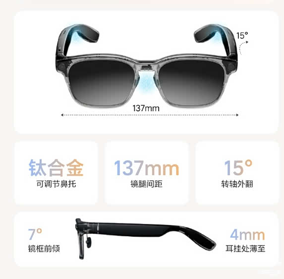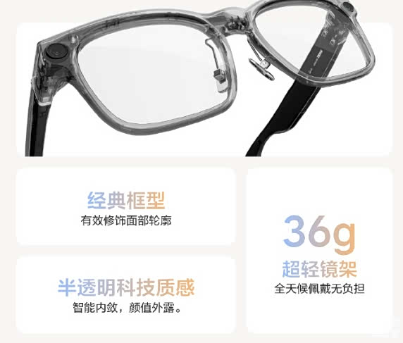 它采用瑞士EMS艾曼斯医疗级TR90材料,比Meta Ray-Ban最新款轻25%,现场试戴两小时,取下时竟差点忘了它还在头上,搭配基于5万份中国人头型数据优化的钛合金转轴和硅胶鼻托,戴久了也不会压鼻夹耳,完全没有普通智能设备的佩戴负担。