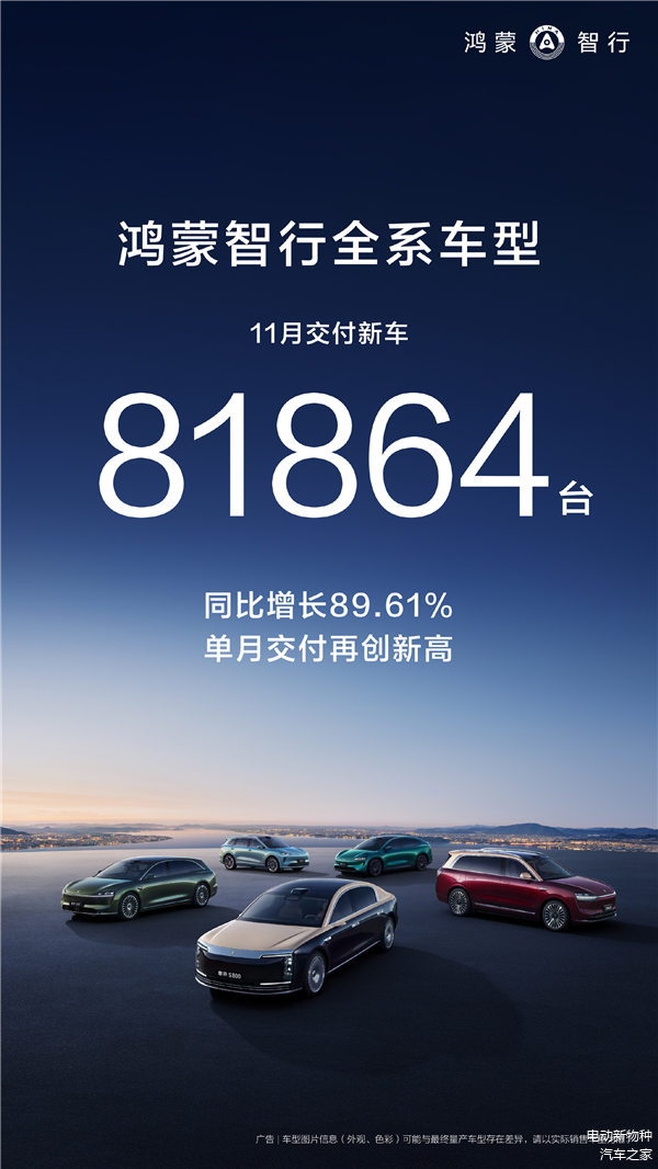 如果说比亚迪代表“稳”,那么鸿蒙智行就是“冲”。11月,鸿蒙智行交付81864辆,比10月的6万多再进一步,直接跨到8万级。短短一个月跨度出现这种力量感,行业少见。