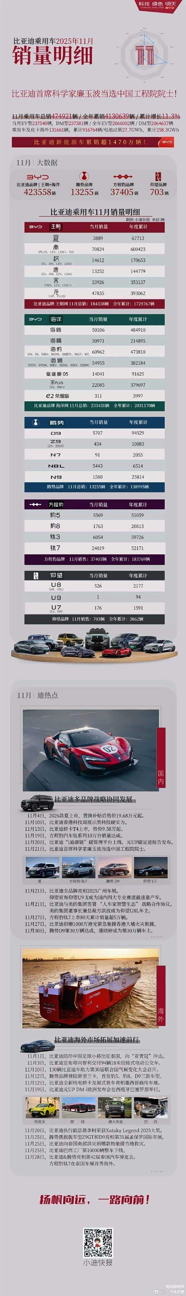 2025年11月,比亚迪再次以超48万辆的成绩毫无悬念占据榜首。比亚迪为何能稳? 这个问题并不新,但每个月的答案都比上个月更具说服力。