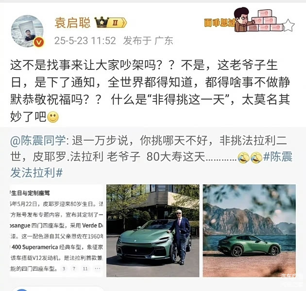 大家好,这里是汽车疗愈。这几天,车圈最大的新闻,就是坐拥2400万粉丝的顶流车评人陈震,突然被平台禁言了。这件事,把之前他和另一位大V袁启聪的激烈互撕,推向了最高潮。
