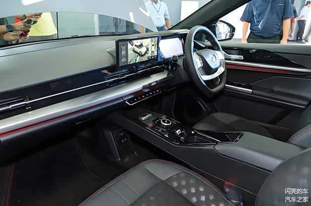 在新车的内部,配备了一块10.25英寸的TFT数字仪表盘,一块10.25英寸的中控屏,支持Apple CarPlay和Android Auto。采用了双辐平底多功能方向盘,另外,由于没有了变速箱的局限,中控台采用了双层设计,设置了多个储物空间、充电接口、无线充电面板等,主打简单实用,另外,换挡器采用了旋钮式设计。除此之外,车内中控区域还采用了大量的铝制饰条,尽量提升内饰的质感。