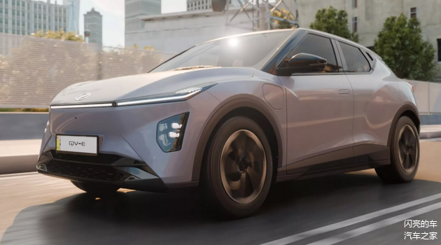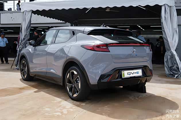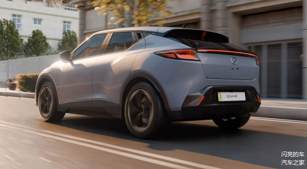 QV-E的车身尺寸为 4170mmX1800mmX1502mm,轴距为2680mm,是一款定位小型SUV的纯电车型,前脸采用了分体式大灯设计,中间利用全宽LED灯条连接,形成了贯穿样式,格栅为全封闭设计,格栅下方为融合了进气口的前保险杠。车身侧面有点类似上一代的丰田C-HR和现款的日产Juke,门把手采用了隐藏式设计,尤其是后门把手直接隐藏在了C柱上,这个设计有点意思,整体线条流畅,拥有不错的运动感。