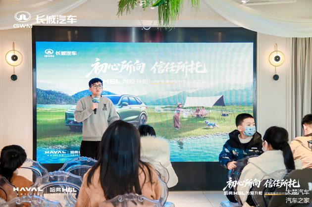 武汉东湖湖光里,临湖而建的活动场地被气球鲜花包裹,“家庭出行”主题装饰错落其间,从户外草坪的车型展示区到室内的互动空间,每一处细节都呼应着哈弗H6L“为爱升舱”的核心理念。下午两点半,伴随着轻柔的音乐,发布会正式拉开帷幕。哈弗品牌区域负责人登台致辞,分享了这款车型的研发初心与市场愿景。