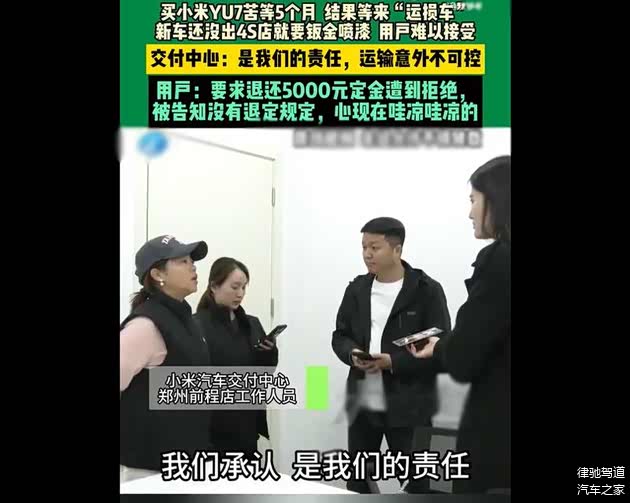 小米YU7运损车纠纷:消费者的定金该不该退?