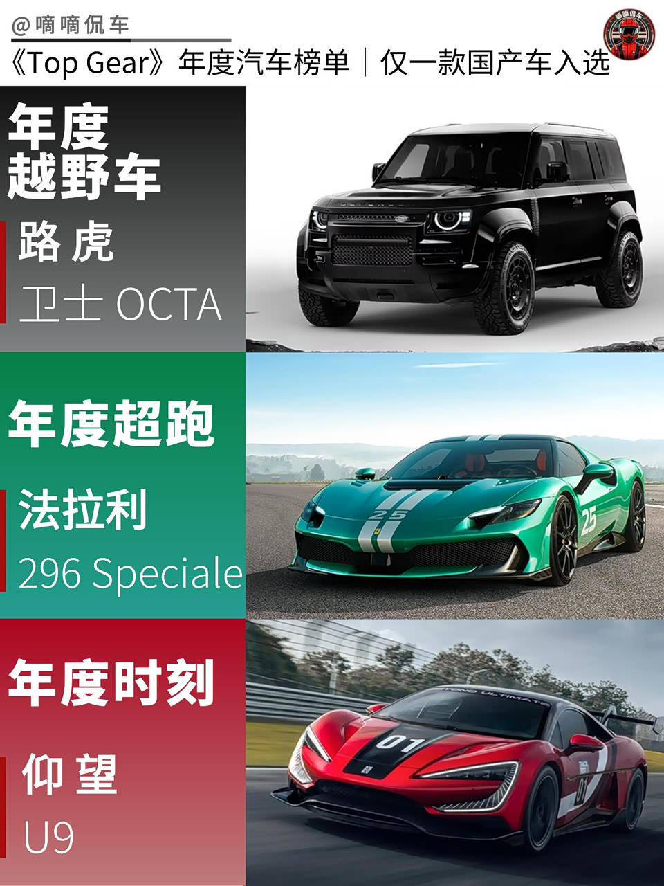 近期 发布了【年度汽车榜单】,其中包含诸多角度,共选出18款车型,其中仰望U9是唯一入选的国产车型。