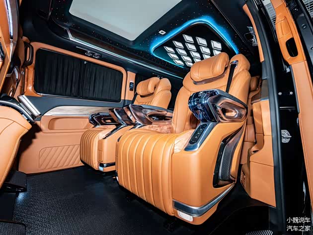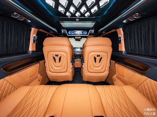 大家好我是小魏,高顶奔驰V300L是奔驰V级的定制升级版本,主打豪华商务MPV市场,基础裸车价格约60万-70万元,主打大空间、个性化定制与高端科技配置。奔驰商务车既有品牌度又有空间感,又有舒适性,是一款宜商又宜家的好选择。今天我们来介绍一款高端制产品——维努斯星航。