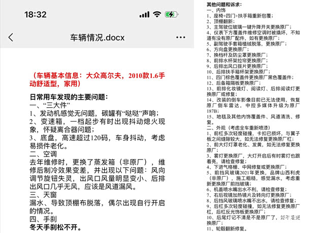 今天是一款家用车型的翻新案例:2010年的 高尔夫6(1.6L手动挡),车子来自山东一位车友,个人一手车,一直家用代步使用,现在已经11万公里了,因为这辆老伙计陪伴车主整个家庭15年了,很有感情了,舍不得换掉它,卖也不值钱了,最多1万块,所以就想着翻新一下继续开: