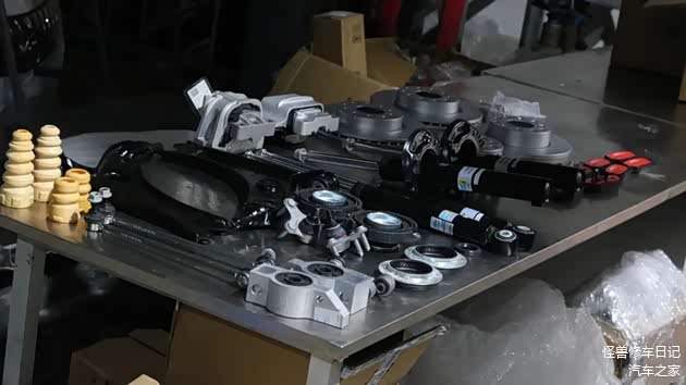 底盘配件到位,更新个别摆臂、一套避震器、一套刹车盘皮、拉杆、机脚、防尘套等等。对于大众车型,别考虑换什么胶套,因为 一个胶套+安装工时费,有时候比一个摆臂总成还贵了,大众配件性价比很高。