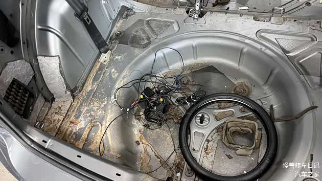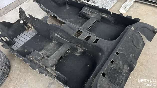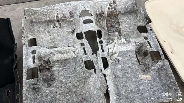 这车地毯下面还有一层止震垫,漏水漏的湿透了,已经有异味了。