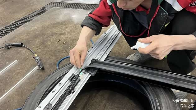 天窗骨架拆解,进行清洁、润滑、疏通,解决漏水问题!