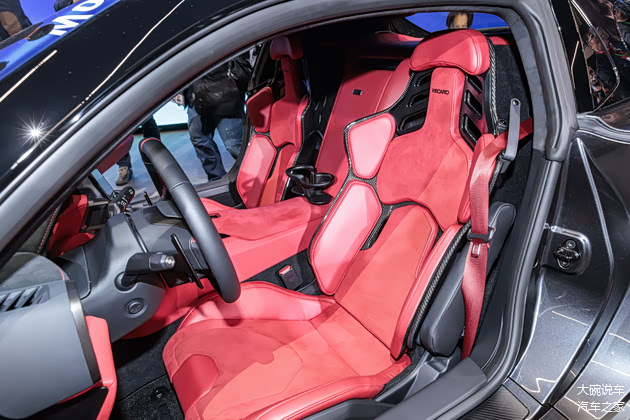 外观上的造型非常漂亮,采用了前置发动机的设计,整体的车身呈现出宽扁低矮的设计风格,前包围采用了宽大的设计,运用了横条式的格栅造型,搭配犀利的前大灯组设计,极具攻击性,前盖带有进气细长条的造型,整体的感觉也是非常的运动。侧面采用了修长的车,运用了犀利的上下腰线,车身高度仅为47英寸(约1194mm),前盖的长度较长,采用了全铝车身框架,配备20英寸轮毂,后轮轮胎宽度达到325毫米。尾部有着很有层次感的设计,提供贯通式的造型,上方带有运动的扰流板,后包围运用了立体的风格,还搭载了四出的排气管设计。