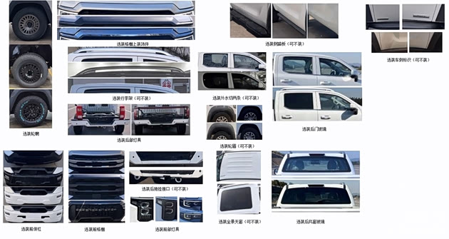 根据申报信息来看, 福田火星9 PHEV提供20余项选装配置,外观方面可选天窗、宽体轮眉、行李架、不同造型前格栅等;功能方面可选装车载ETC装置、前后桥电控差速锁、220V外放电接口;轮胎提供265/70R18与全地形LT285/70R17两种规格,后者充分考虑到车型日后越野能力。