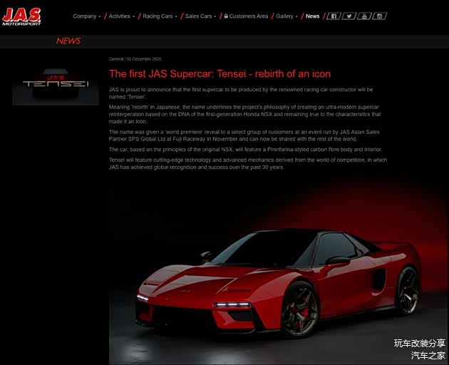 今年是意大利赛车制造商JAS Motorsport与本田合作的第30年,也是传奇跑车本田NSX诞生的第35年。为纪念这一里程碑,JAS Motorsport宣布与同样来自意大利的顶级设计公司宾尼法利纳合作,共同打造一款名为“Tensei”的初代NSX复刻车型。这并非一次简单的外观模仿,而是一次跨越三十年的工程对话,目标是回答一个问题:如果初代NSX从未停产并持续进化,它在今天会是什么模样?