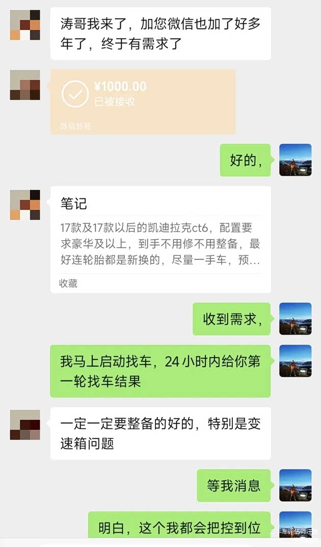 这次受福建建瓯粉丝全权委托淘车,人在当地直接安排物流到家,淘车前他对自己的目标车型CT6性价比、预算、配置、车况成色、过户次数等硬指标,都整理成长长的一个要求笔记发给我,同时作为一个默默关注我好几年的铁粉,必须帮每一位粉丝安排上全渠道性价比最高的车源。
