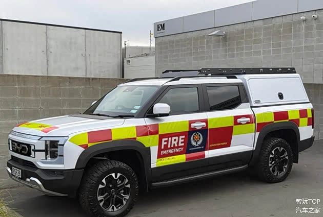 例如比亚迪专为海外研发的新能源皮卡SHARK,用上动力强又省油可靠的DM-i混动系统,已经被新西兰消防、墨西哥警队用上了。