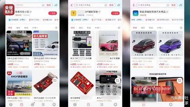 央视调查发现,“智驾神器”多以物理外挂为主,线上为主要销售渠道。这类产品用“AP (Autopilot) 免打扰”“解放双手”“长途不累”等话术吸引消费者,由于售价仅50-130元不等,且覆盖特斯拉、问界、理想、蔚来等主流智能汽车品牌,“智驾神器”单店销量过千,甚至上万。