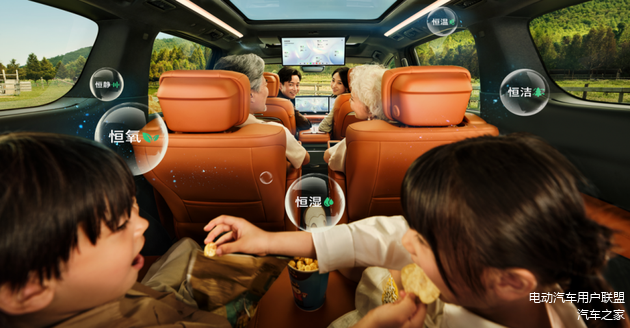 针对高净值家庭对健康出行的更高追求,至境世家行业首创“五恒”大健康座舱,采用先进健康科技与硬件配备,并联合全球顶尖认证机构,打造恒温、恒湿、恒氧、恒洁、恒静的健康舒适座舱环境。世家的座舱引入同级独有的松下nanoe™X净化技术,行业首创南德TÜV护眼认证1.1米超长智慧顶灯,前排三屏贯通式娱乐屏和后舱智慧屏均通过莱茵TÜV低蓝光护眼认证;座椅皮革通过全球最高标准OEKO-TEX婴儿级认证,即使被婴幼儿无意接触甚至啃咬也绝对安全;座舱的电磁辐射值比手机更低,无论是有娃家庭还是备孕夫妇,或是佩戴心脏起搏器等敏感人群都能放心驾乘。通过“五恒”大健康座舱,至境世家引领新能源MPV实现从“冰箱彩电大沙发”到“家庭出行大健康”的价值跨越。