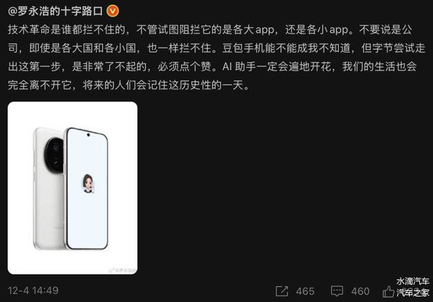 豆包手机是一个标志性的事件。历史车轮滚滚向前,AI改变智能手机无法阻挡,AI上车同样势不可挡。