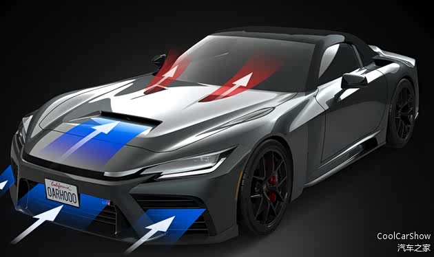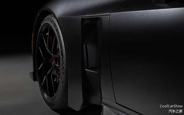 同时引擎盖上拥有硕大的导流孔,前翼子板后方也有一个相当夸张的通风口,为前部提供下压力的同时,机舱的散热效率也得以保证。
