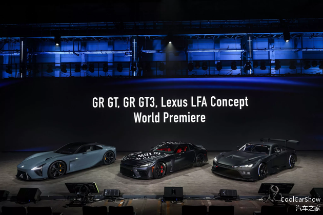 GR GT的推出并非单纯定位为市售超跑,更肩负着与梅赛德斯-AMG GT一较高下、征战GT3赛事的前置引擎跑车使命。因此,同场发布的车型中,除了GR GT量产版与LFA概念车,更有其赛道版车型GR GT3。