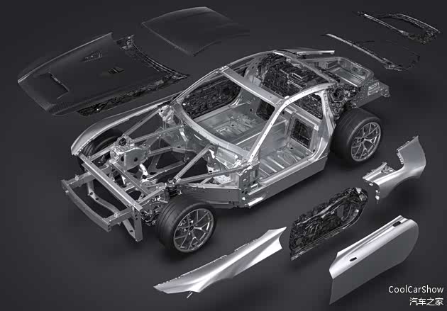 而且GR GT采用前中置布局,拥有一个很长的车头,车身比例与AMG GT、道奇蝰蛇类似。车身框架完全由铝制成,由九个低压铸造部件与铝挤压件焊接,并大量应用碳纤维部件,使得其重量仅为1750公斤,前后重量分配为 45:55。