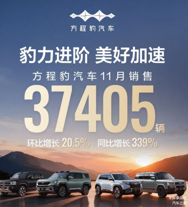 但如果把腾势放在整个比亚迪集团的成绩里,前十一个月累计销售13万辆的成绩,不要说和动辄一两百万辆的王朝和海洋去比,就连历史和车型数量都不如腾势的方程豹成绩都更好看点儿。毕竟方程豹靠着4款车就在11月卖了3.7万辆,远超腾势六款车型卖出的1.3万辆,更不用说方程豹超过三位数的同比增长。