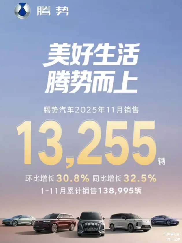 环比增长 30.8%,同比增长 32.5%!这是腾势在11月份亮出的成绩单,单就整体双降的11月乘用车整体市场看当然算的亮眼。
