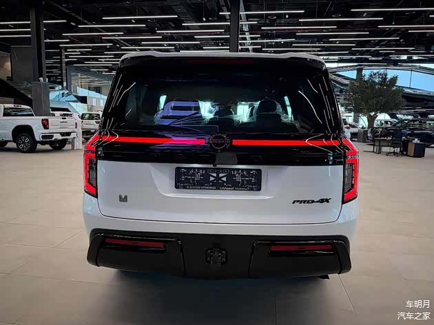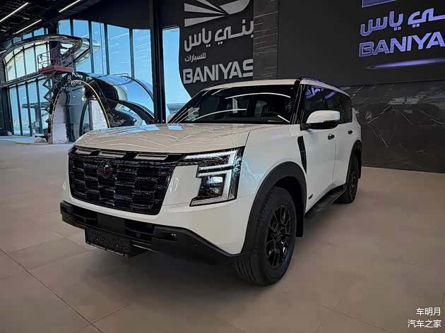 全新 日产途乐惊艳登场,凭借极具气势的外观设计迅速吸引众人目光。实车为 pro - 4X 版本,白色车身搭配黑色细节,颜值出众,且巧妙融合了越野与运动风格。