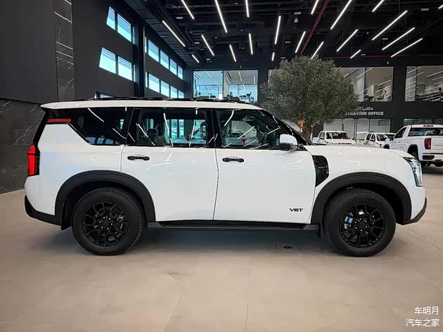 前脸部分,黑化的规整网状格栅搭配全新车标,大气之感扑面而来。竖向头灯组精致有型,进一步强化了车头的强大气场。侧面线条威武大气,悬浮式侧窗线、黑化 A 柱以及运动感十足的黑色轮毂,每一处细节都彰显着独特魅力。尾部平直的贯通式尾灯组,点亮后档次感满满。越野性能上,33.9 度的接近角、25.3 度的通过角和 24.3 度的离去角,赋予其出色的通过能力。