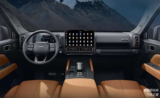 基于官图,哈弗H9穿越版内饰由黑棕双色搭配,设计风格和常规版哈弗H9基本一致,预计配置提供10.25英寸液晶仪表,14.6英寸中控屏,前排座椅加热/通风等。