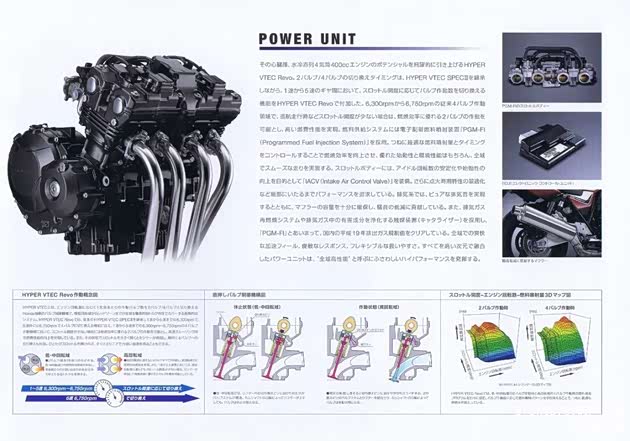 举例来说,本田摩托车的VTEC技术经历了四代更迭(SPEC I,SPEC II,SPEC III,HyperVTEC Revo),但其进化方向始终围绕在开阀转速的优化上,即根据转速和档位决定气门开启与不开启。