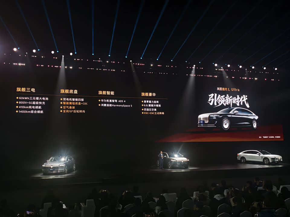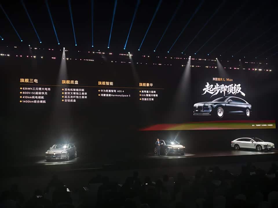 岚图追光L,指导价为27.99万-30.99万元,级别直接对标BBA的“56E”系列。硬件部分上了华为乾崑智驾ADS 4、鸿蒙座舱,采用800V架构,配备63度大电池+5C超充等配置,实现410km纯电续航,1400km综合续航。