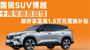 吉利博越10周年感恩季开启,购车限时享至高15000元置换补贴!