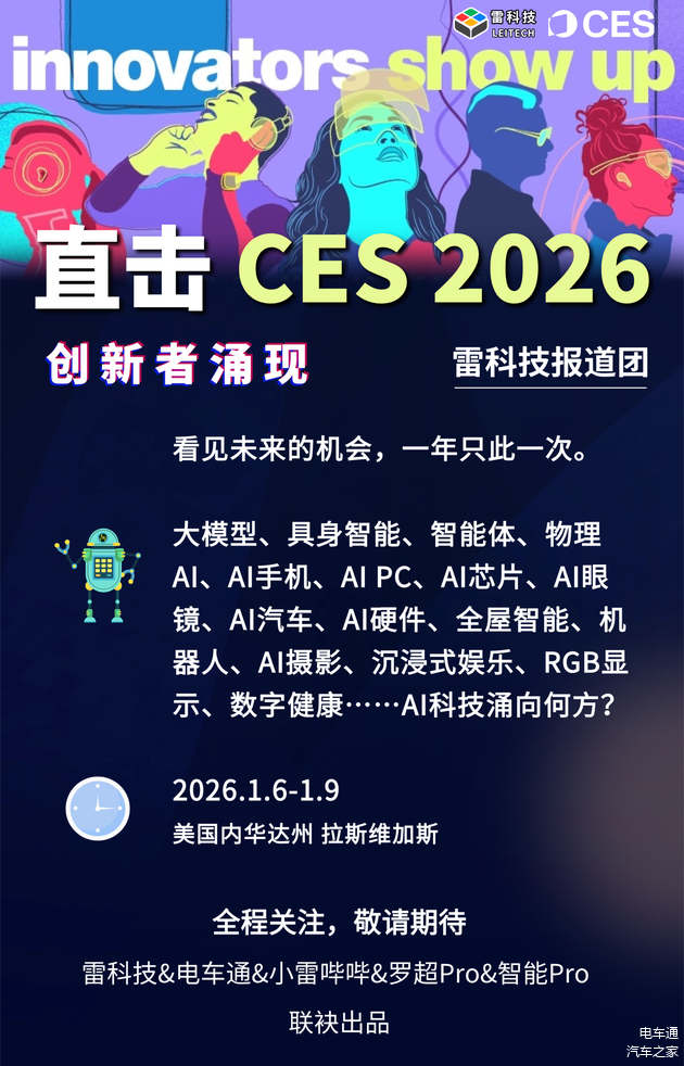 CES2026开幕在即!(1月6日-1月9日)作为中国报道科技展会最悠久、最深入、最专业的新媒体,雷科技CES2026报道团正在进行紧张的前期筹备。届时雷科技将派出史上最大规模的CES报道团,并由雷科技创始人兼总编辑罗超带队,对CES2026进行一线、专业和立体报道,敬请期待!