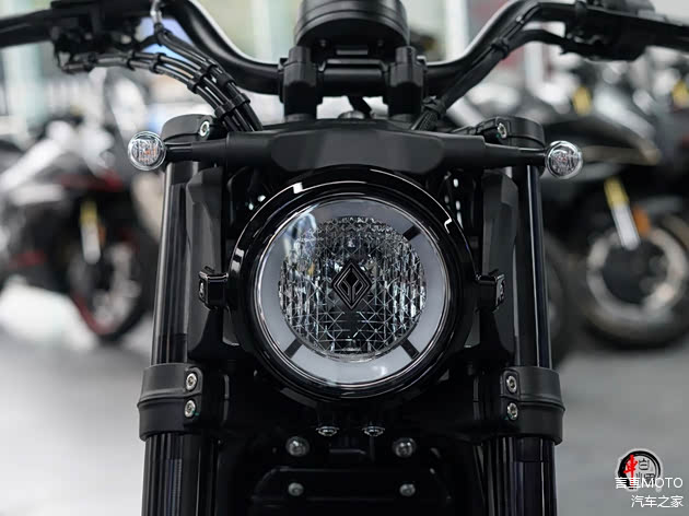灰石707采用了经典的美式Bobber巡航风格,1545mm的超长轴距和低矮的车身构成了其视觉基础,营造出舒展且稳重的姿态。整车线条在硬朗的肌肉感与流畅的曲面间取得了平衡。前脸“星钻”LED大灯,多切面结构增添精致感。车身侧面V型双缸发动机是视觉重心,镀铬的装饰件和双侧单出排气进一步强化了复古韵味。