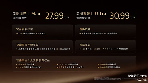 2025年12月10日,岚图追光L在北京正式上市,两款车型售价27.99万元与30.99万元,配合总价值5.2万元的六大无忧服务权益以及3年0息金融支持,为中国品牌在30万级豪华轿车市场投下了一枚重量级“变量” 。