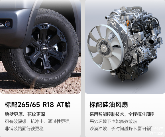 同时,穿越版将车身升高30mm,最小离地间隙增加11mm,接近角与通过角相应提升。配合原厂标配的265/65 R18全地形轮胎,车辆在提升极限通过性的同时,确保了官方标定的成熟度与长期可靠性。