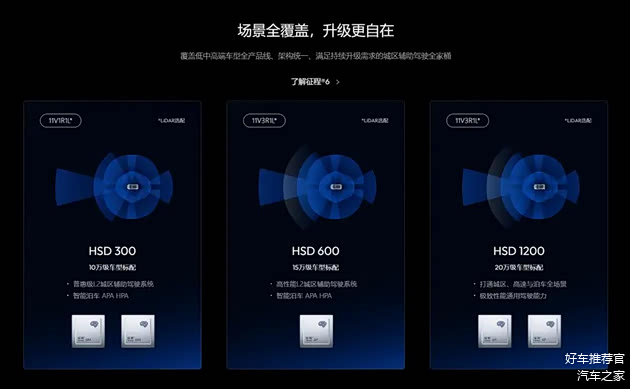 对于HSD来说,大算力与激光雷达都并非“必需品”,它能提供丰俭由人的硬件组合,对激光雷达没有强绑定依赖,在算力上也有一定区间可供选择,这为硬件成本预留了充分的削减空间。