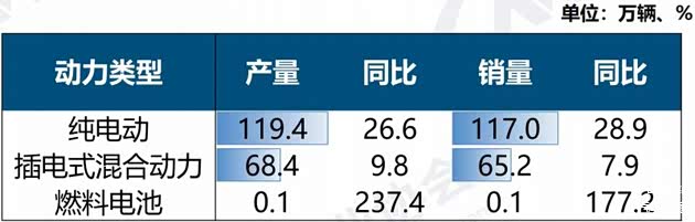 在新能源汽车主要品种中,三大类新能源汽车品种产销环比、同比均呈不同程度增长。