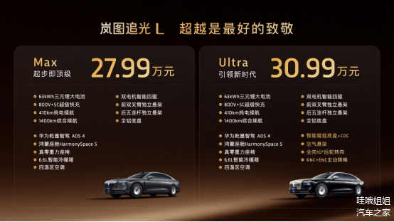 作为行业唯一同时拥有全域800V智能超混、5C超充与63kWh大容量电池的新能源旗舰轿车,岚图追光L全系搭载最先进的“华为全家桶”智能生态——乾崑智驾ADS 4与鸿蒙座舱5,拥有百万级底盘配置,并标配智能四驱系统,实现了“百万级驾控”与“行政级舒适”的完美统一,树立了中大型插混轿车能效新标杆。