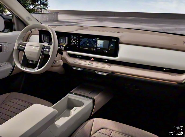 内饰方面,新车采用了起亚家族最新的风格,方向盘上偏向一侧的KN品牌LOGO也确实标新立异,不过强迫症可能会有点难受。新车配备了双10.25英寸一体式显示屏,支持多窗口显示功能。